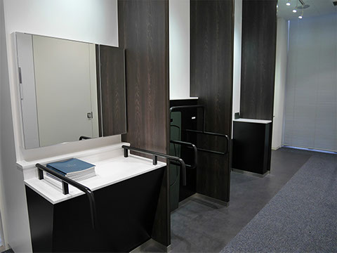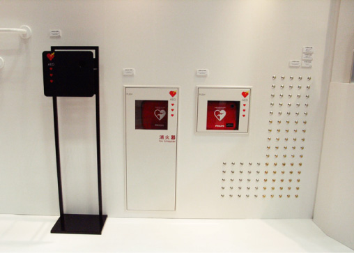 埋め込み式消火器ケース、誘導鋲等のディスプレイ